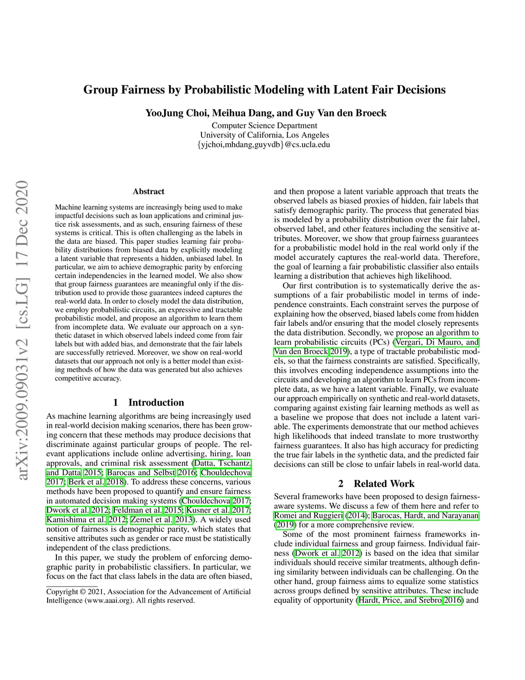 Group Fairness by Probabilistic Modeling with Latent Fair Decisions