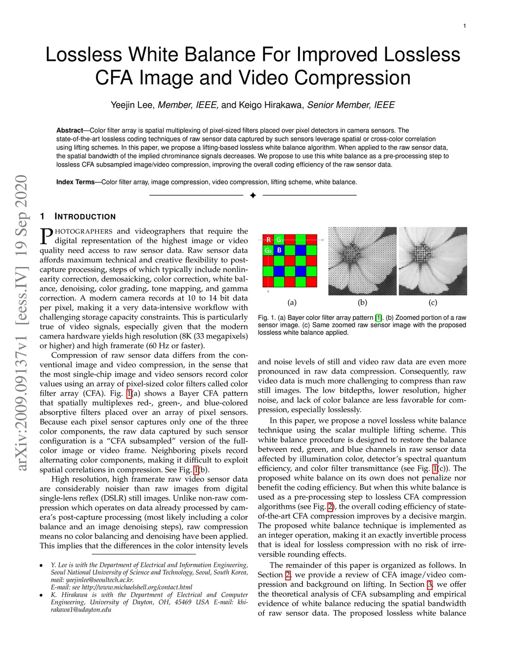 Lossless White Balance For Improved Lossless CFA Image and Video