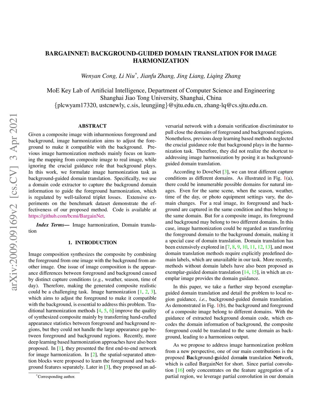 BargainNet: Background-Guided Domain Translation for Image Harmonization