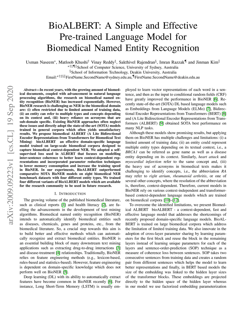 BioALBERT: A Simple and Effective Pre-trained Language Model for