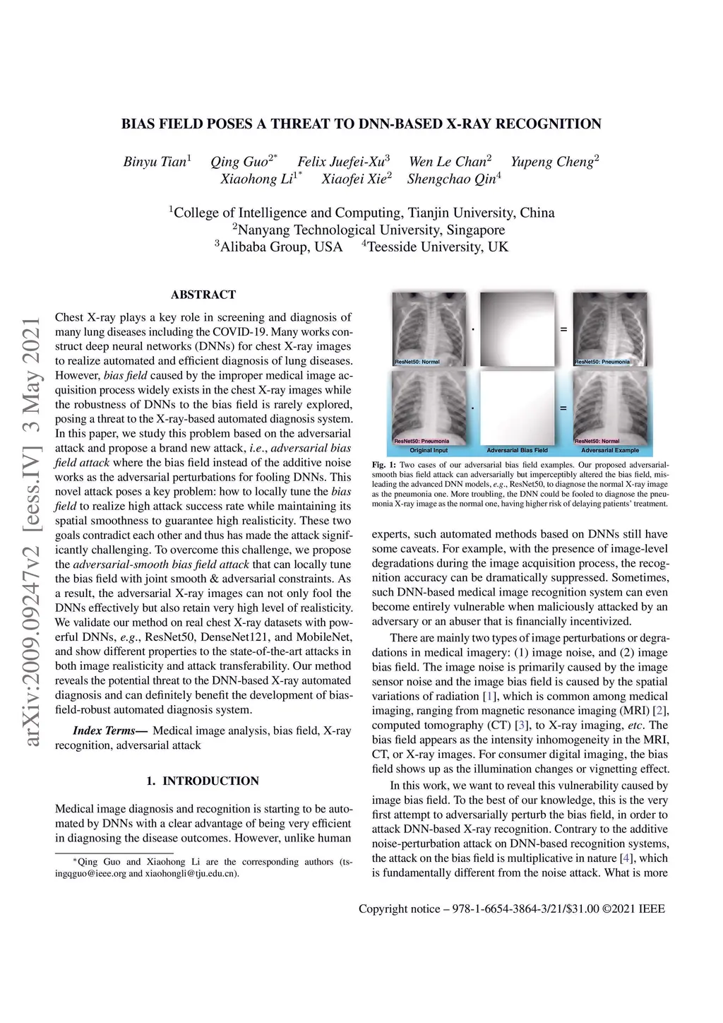Bias Field Poses a Threat to DNN-based X-Ray Recognition
