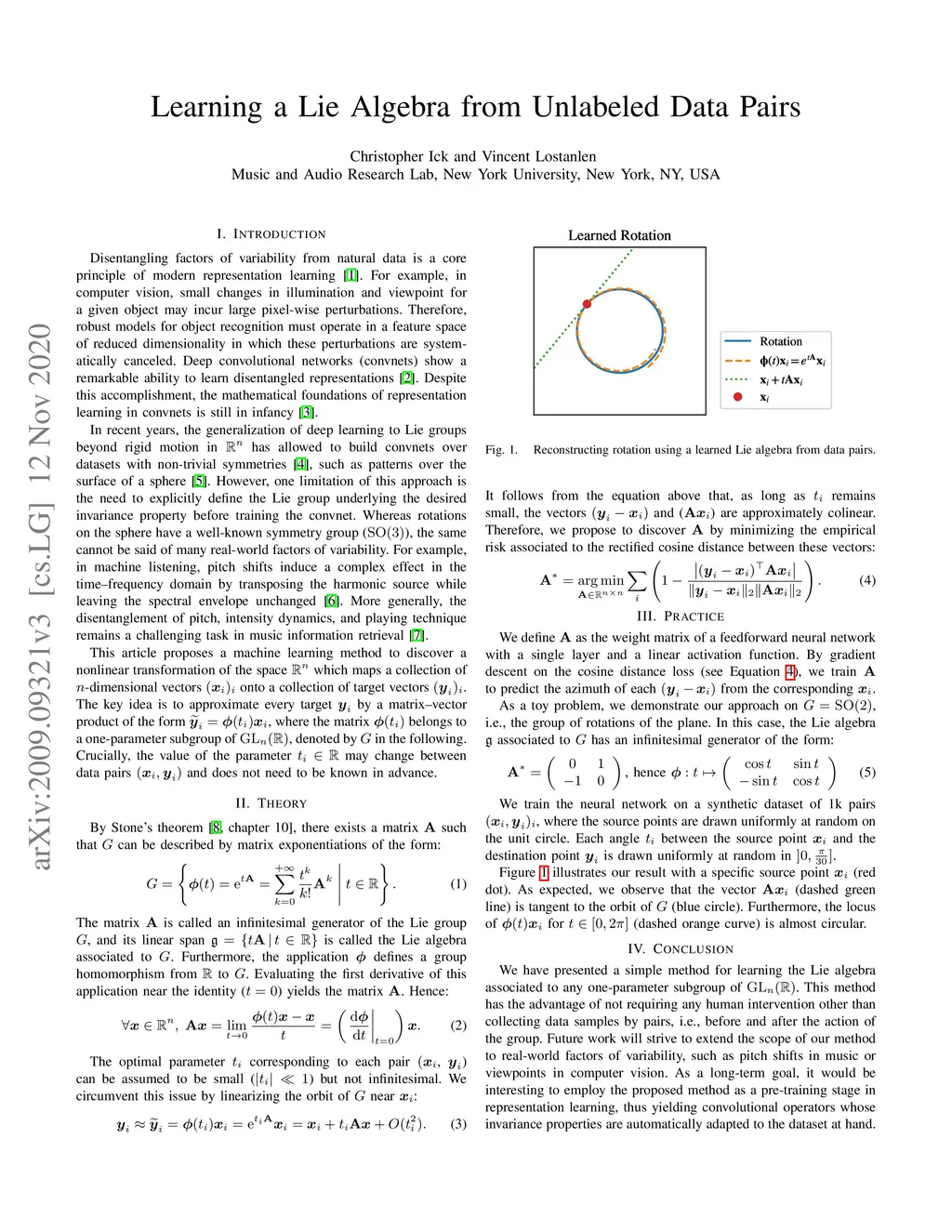 Deep convolutional networks (convnets) show a remarkable ability to learn disentangled representations. In recent years, the generalization of deep learning to Lie groups beyond rigid motion in has allowed to build convnets over datasets with non-trivial symmetries, such as patterns over the surface of a sphere. However, one limitation of this approach is the need to explicitly define the Lie group underlying the desired invariance property before training the convnet. Whereas rotations on the sphere have a well-known symmetry group (), the same cannot be said of many real-world factors of variability. For example, the disentanglement of pitch, intensity dynamics, and playing technique remains a challenging task in music information retrieval. This article proposes a machine learning method to discover a nonlinear transformation of the space which maps a collection of -dimensional vectors onto a collection of target vectors . The key idea is to approximate every target by a matrix--vector product of the form , where the matrix belongs to a one-parameter subgroup of . Crucially, the value of the parameter may change between data pairs and does not need to be known in advance.