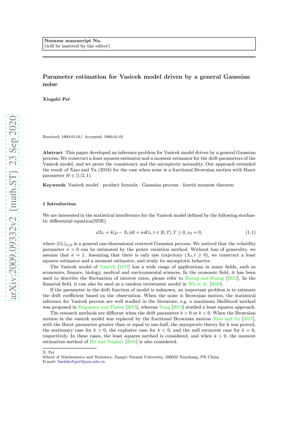 This paper developed an inference problem for Vasicek model driven by a general Gaussian process. We construct a least squares estimator and a moment estimator for the drift parameters of the Vasicek model, and we prove the consistency and the asymptotic normality. Our approach extended the result of Xiao and Yu (2018) for the case when noise is a fractional Brownian motion with Hurst parameter H \in [1/2,1).