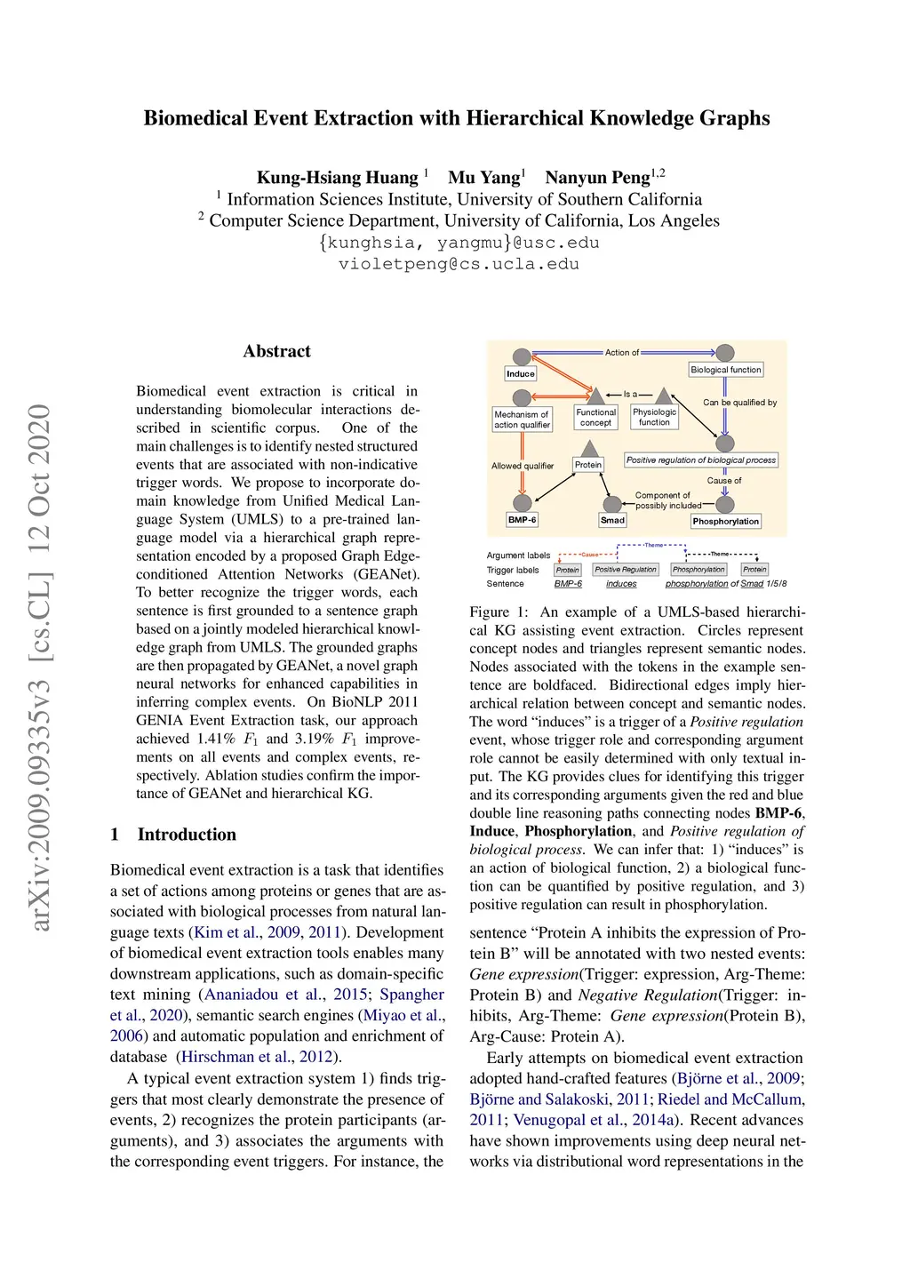 Biomedical Event Extraction with Hierarchical Knowledge Graphs