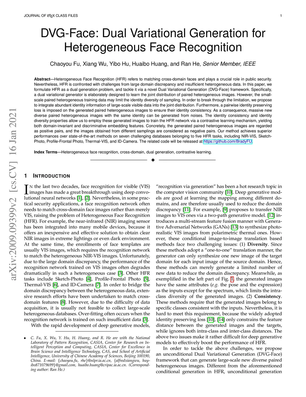 DVG-Face: Dual Variational Generation for Heterogeneous Face Recognition
