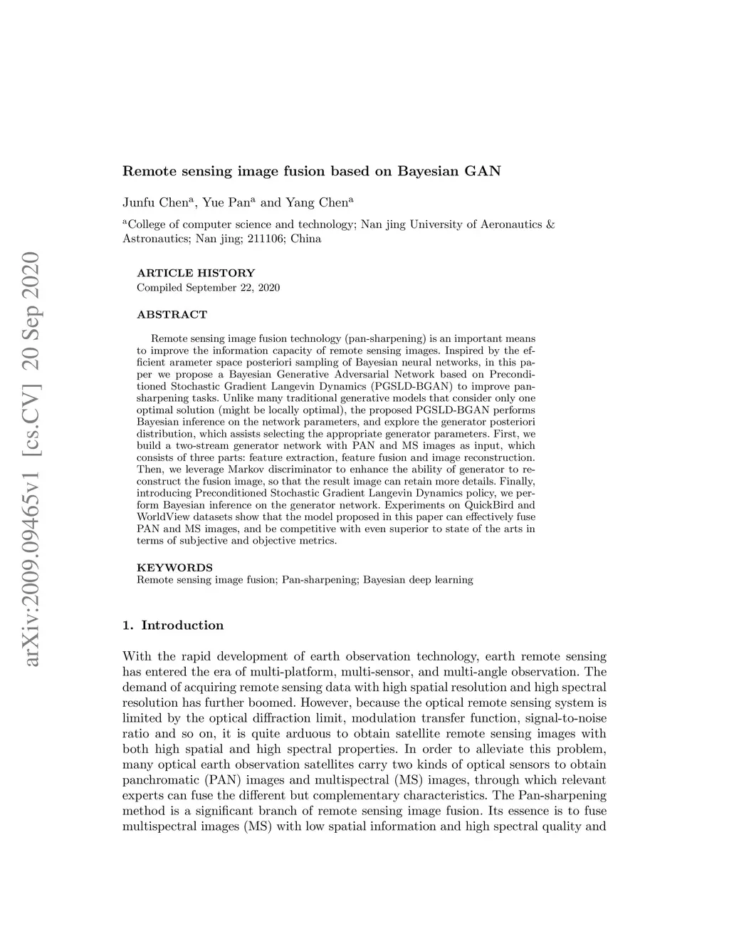Remote sensing image fusion based on Bayesian GAN