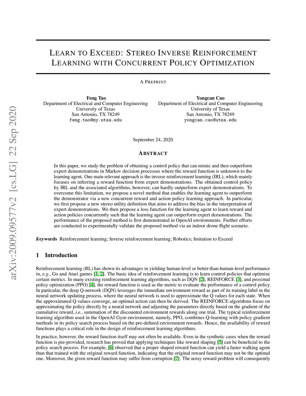 Learn to Exceed: Stereo Inverse Reinforcement Learning with Concurrent