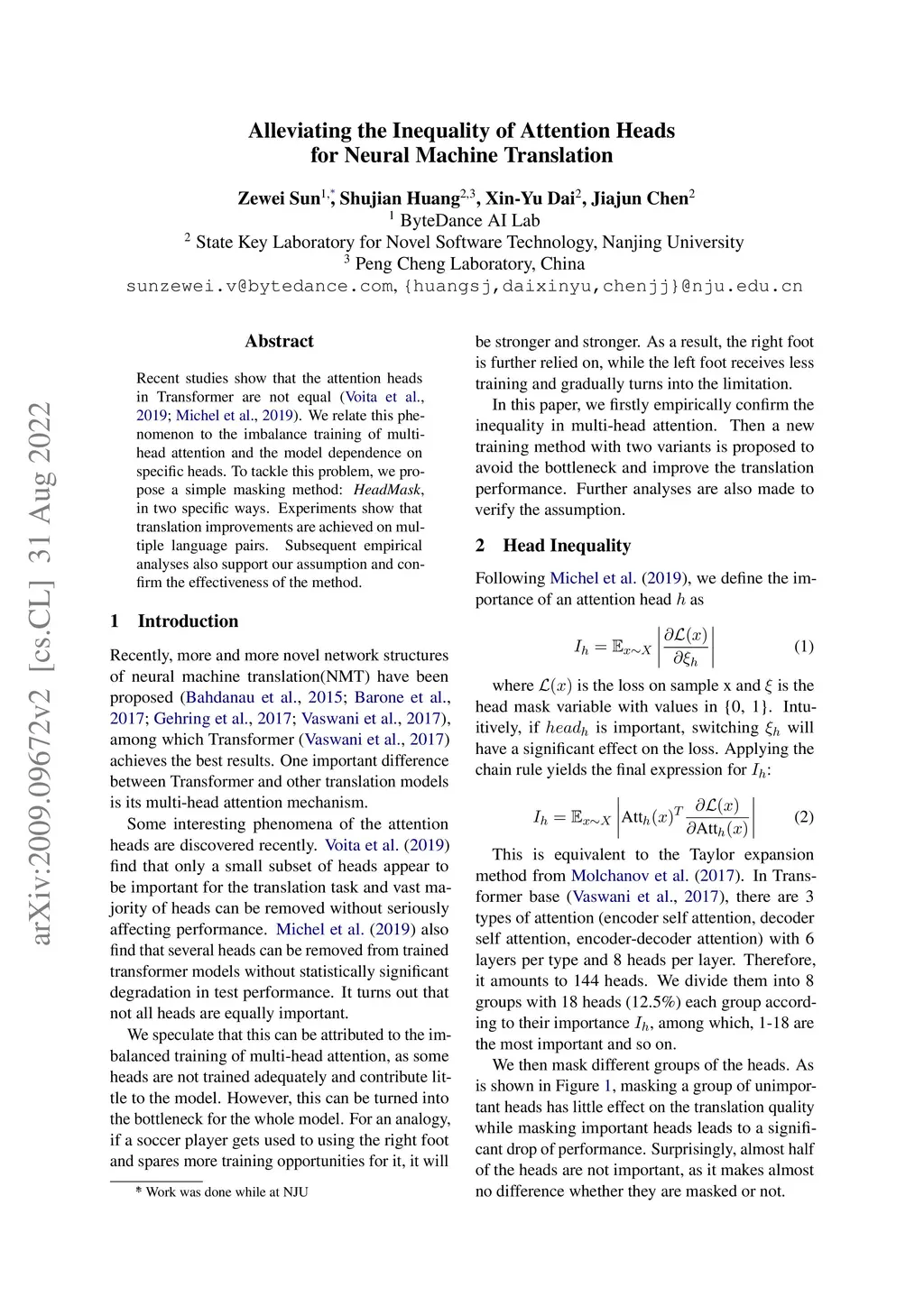 Alleviating the Inequality of Attention Heads for Neural Machine