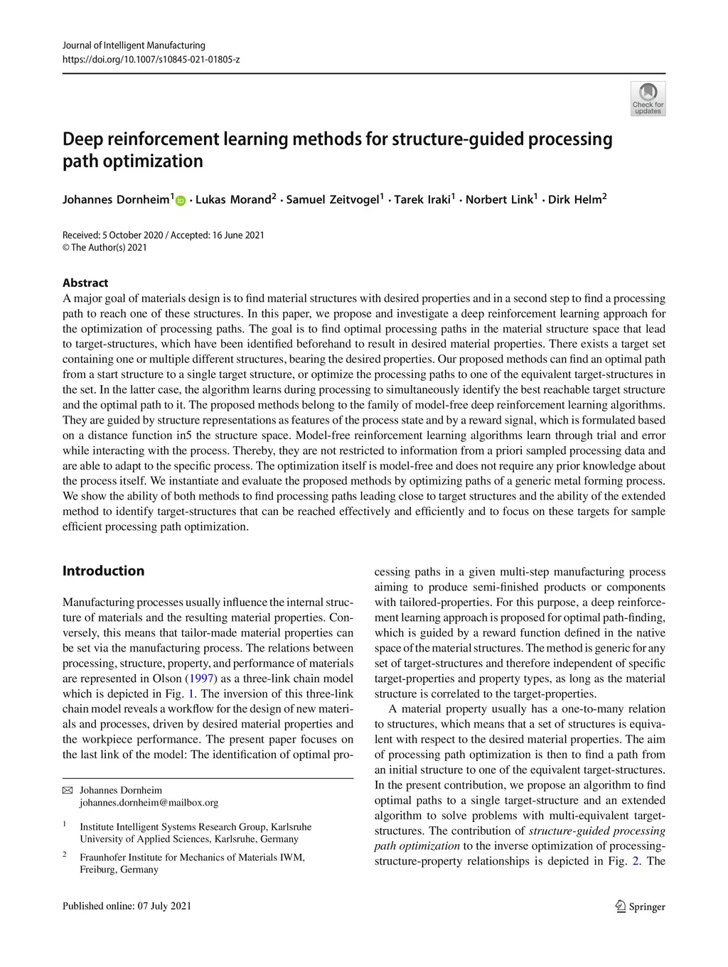 Deep Reinforcement Learning Methods for Structure-Guided Processing Path