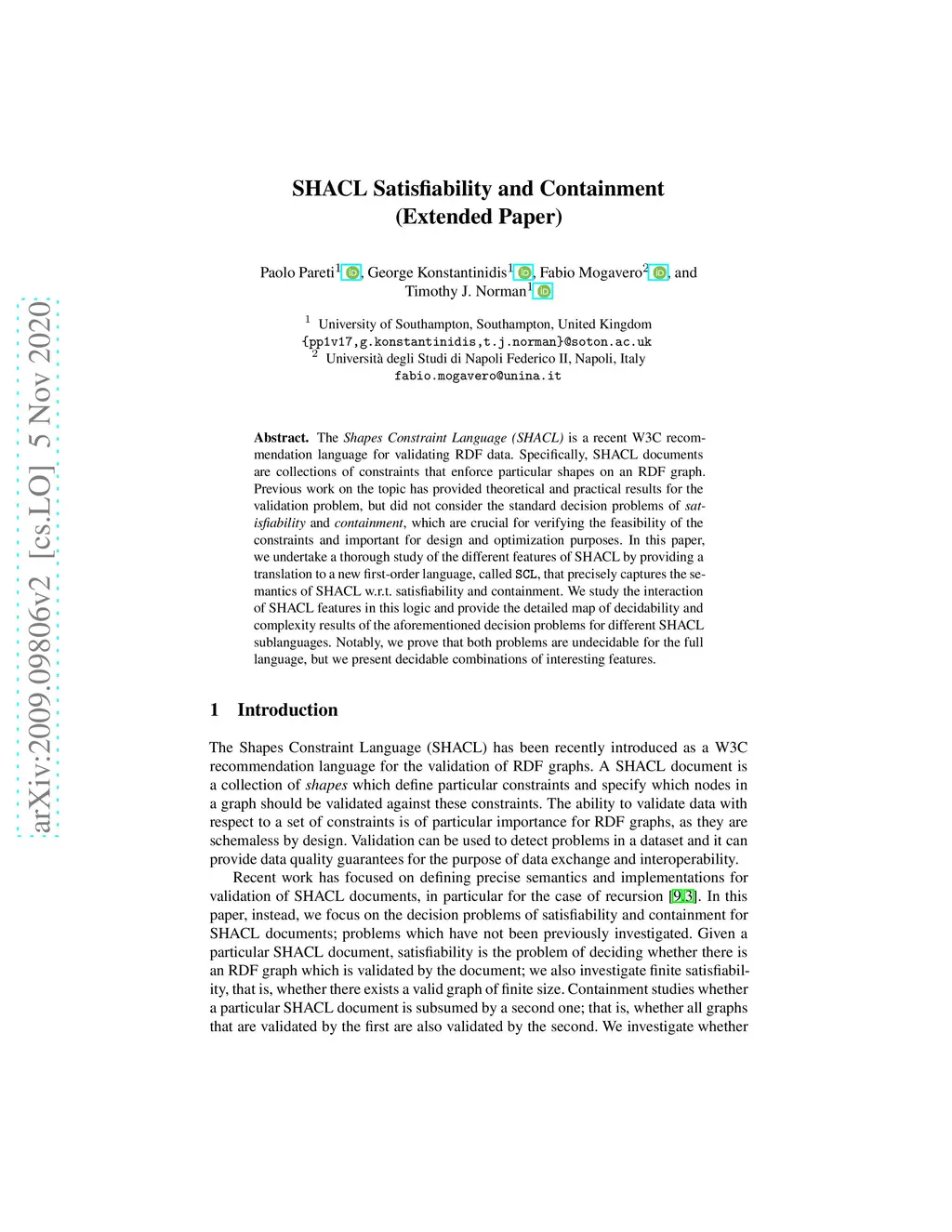 The Shapes Constraint Language (SHACL) is a recent W3C recommendation language for validating RDF data. Specifically, SHACL documents are collections of constraints that enforce particular shapes on an RDF graph. Previous work on the topic has provided theoretical and practical results for the validation problem, but did not consider the standard decision problems of satisfiability and containment, which are crucial for verifying the feasibility of the constraints and important for design and optimization purposes. In this paper, we undertake a thorough study of different features of non-recursive SHACL by providing a translation to a new first-order language, called SCL, that precisely captures the semantics of SHACL w.r.t. satisfiability and containment. We study the interaction of SHACL features in this logic and provide the detailed map of decidability and complexity results of the aforementioned decision problems for different SHACL sublanguages. Notably, we prove that both problems are undecidable for the full language, but we present decidable combinations of interesting features.