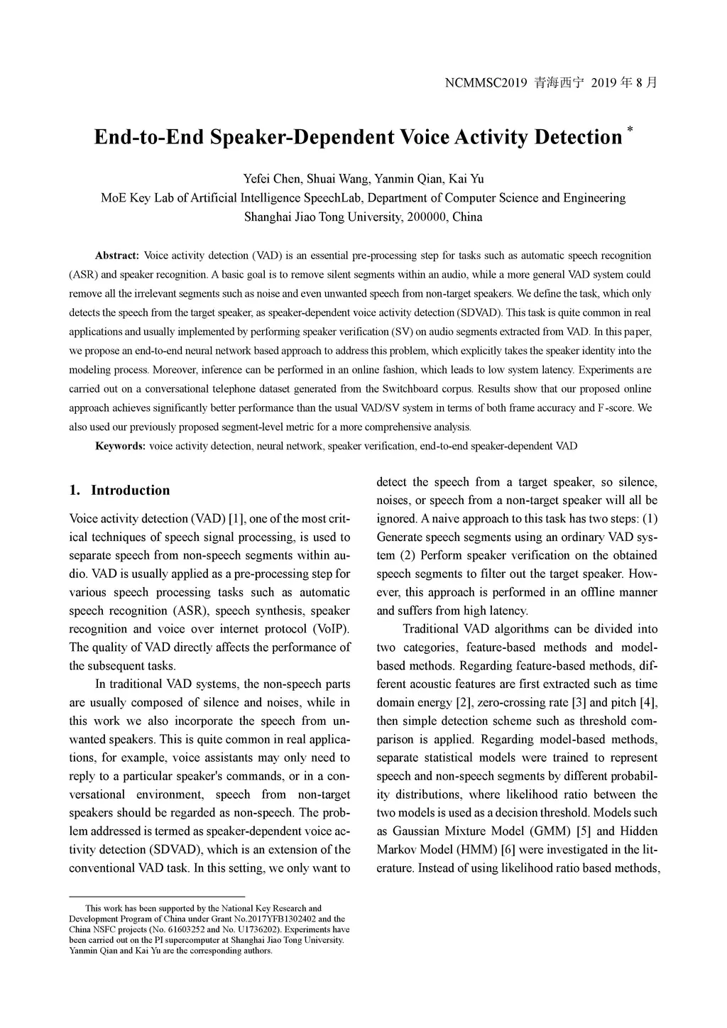 End-to-End Speaker-Dependent Voice Activity Detection