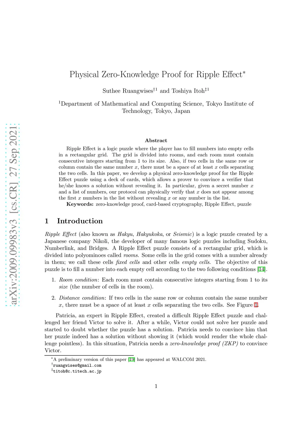 Physical Zero-Knowledge Proof for Ripple Effect