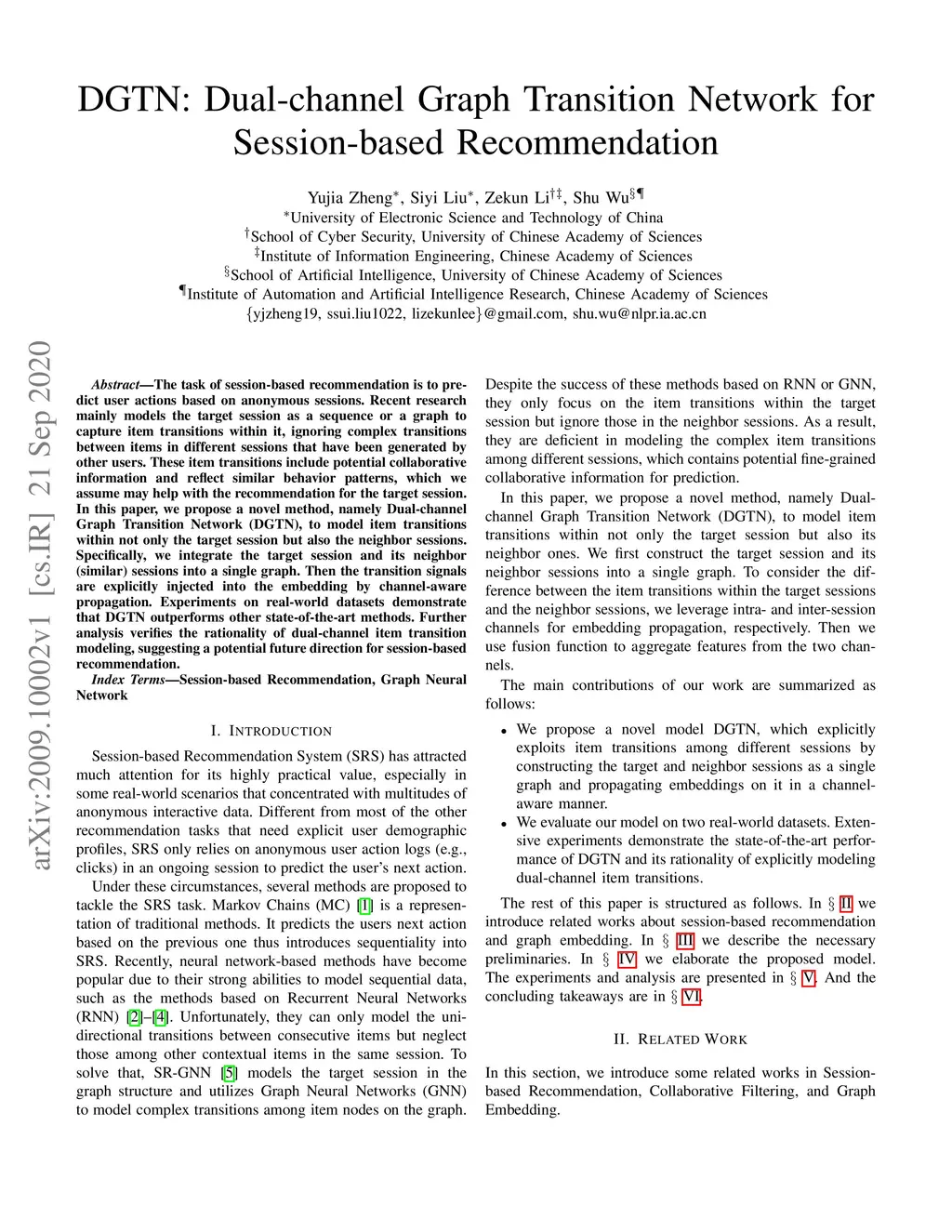 DGTN: Dual-channel Graph Transition Network for Session-based