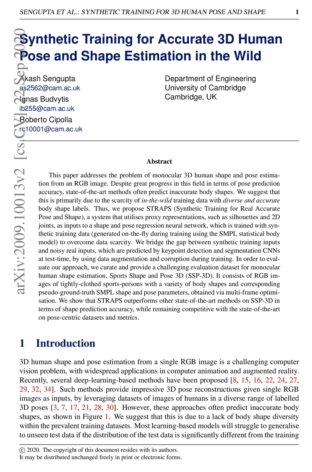This paper addresses the problem of monocular 3D human shape and pose estimation from an RGB image. Despite great progress in this field in terms of pose prediction accuracy, state-of-the-art methods often predict inaccurate body shapes. We suggest that this is primarily due to the scarcity of in-the-wild training data with diverse and accurate body shape labels. Thus, we propose STRAPS (Synthetic Training for Real Accurate Pose and Shape), a system that utilises proxy representations, such as silhouettes and 2D joints, as inputs to a shape and pose regression neural network, which is trained with synthetic training data (generated on-the-fly during training using the SMPL statistical body model) to overcome data scarcity. We bridge the gap between synthetic training inputs and noisy real inputs, which are predicted by keypoint detection and segmentation CNNs at test-time, by using data augmentation and corruption during training. In order to evaluate our approach, we curate and provide a challenging evaluation dataset for monocular human shape estimation, Sports Shape and Pose 3D (SSP-3D). It consists of RGB images of tightly-clothed sports-persons with a variety of body shapes and corresponding pseudo-ground-truth SMPL shape and pose parameters, obtained via multi-frame optimisation. We show that STRAPS outperforms other state-of-the-art methods on SSP-3D in terms of shape prediction accuracy, while remaining competitive with the state-of-the-art on pose-centric datasets and metrics.