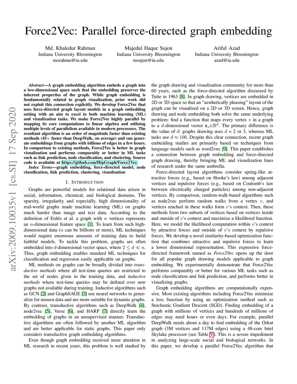 Force2Vec: Parallel force-directed graph embedding