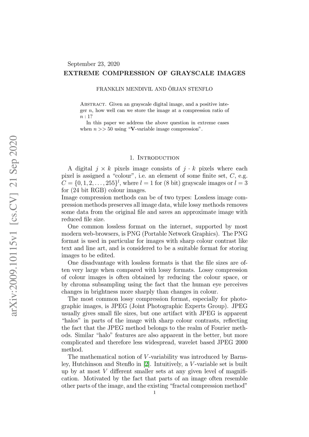 Given an grayscale digital image, and a positive integer , how well can we store the image at a compression ratio of ? In this paper we address the above question in extreme cases when using "-variable image compression".