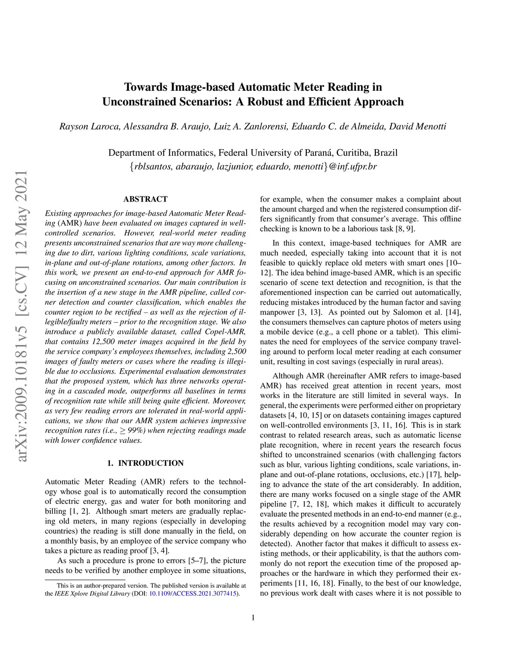 Existing approaches for image-based Automatic Meter Reading (AMR) have been evaluated on images captured in well-controlled scenarios. However, real-world meter reading presents unconstrained scenarios that are way more challenging due to dirt, various lighting conditions, scale variations, in-plane and out-of-plane rotations, among other factors. In this work, we present an end-to-end approach for AMR focusing on unconstrained scenarios. Our main contribution is the insertion of a new stage in the AMR pipeline, called corner detection and counter classification, which enables the counter region to be rectified -- as well as the rejection of illegible/faulty meters -- prior to the recognition stage. We also introduce a publicly available dataset, called Copel-AMR, that contains 12,500 meter images acquired in the field by the service company's employees themselves, including 2,500 images of faulty meters or cases where the reading is illegible due to occlusions. Experimental evaluation demonstrates that the proposed system, which has three networks operating in a cascaded mode, outperforms all baselines in terms of recognition rate while still being quite efficient. Moreover, as very few reading errors are tolerated in real-world applications, we show that our AMR system achieves impressive recognition rates (i.e., > 99%) when rejecting readings made with lower confidence values.