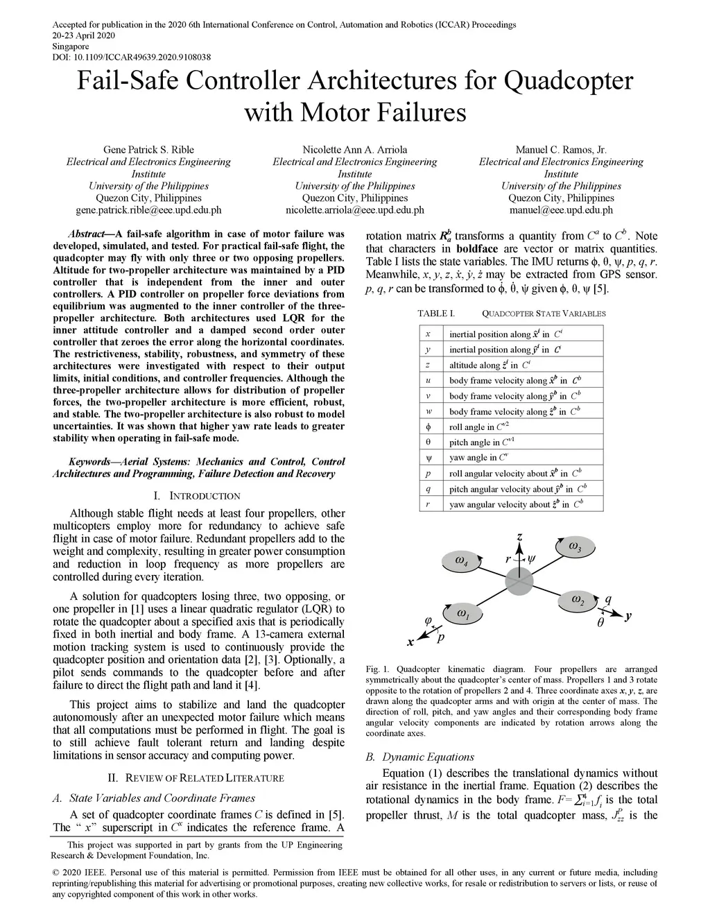 Fail-Safe Controller Architectures for Quadcopter with Motor Failures