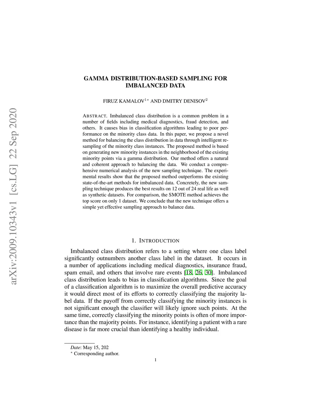 Gamma distribution-based sampling for imbalanced data