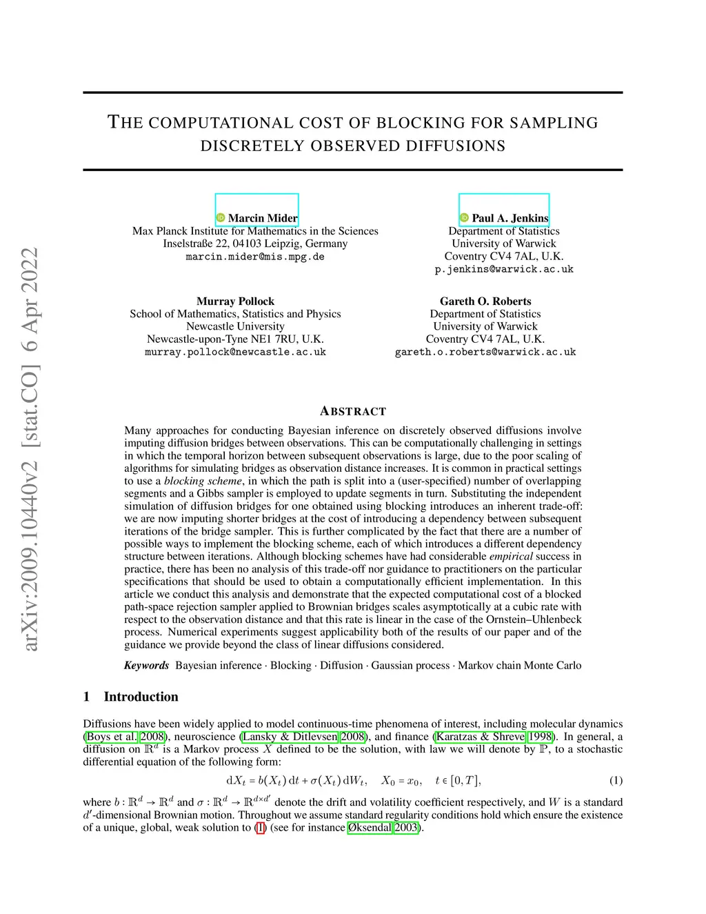 Many approaches for conducting Bayesian inference on discretely observed diffusions involve imputing diffusion bridges between observations. This can be computationally challenging in settings in which the temporal horizon between subsequent observations is large, due to the poor scaling of algorithms for simulating bridges as observation distance increases. It is common in practical settings to use a blocking scheme, in which the path is split into a (user-specified) number of overlapping segments and a Gibbs sampler is employed to update segments in turn. Substituting the independent simulation of diffusion bridges for one obtained using blocking introduces an inherent trade-off: we are now imputing shorter bridges at the cost of introducing a dependency between subsequent iterations of the bridge sampler. This is further complicated by the fact that there are a number of possible ways to implement the blocking scheme, each of which introduces a different dependency structure between iterations. Although blocking schemes have had considerable empirical success in practice, there has been no analysis of this trade-off nor guidance to practitioners on the particular specifications that should be used to obtain a computationally efficient implementation. In this article we conduct this analysis and demonstrate that the expected computational cost of a blocked path-space rejection sampler applied to Brownian bridges scales asymptotically at a cubic rate with respect to the observation distance and that this rate is linear in the case of the Ornstein-Uhlenbeck process. Numerical experiments suggest applicability both of the results of our paper and of the guidance we provide beyond the class of linear diffusions considered.