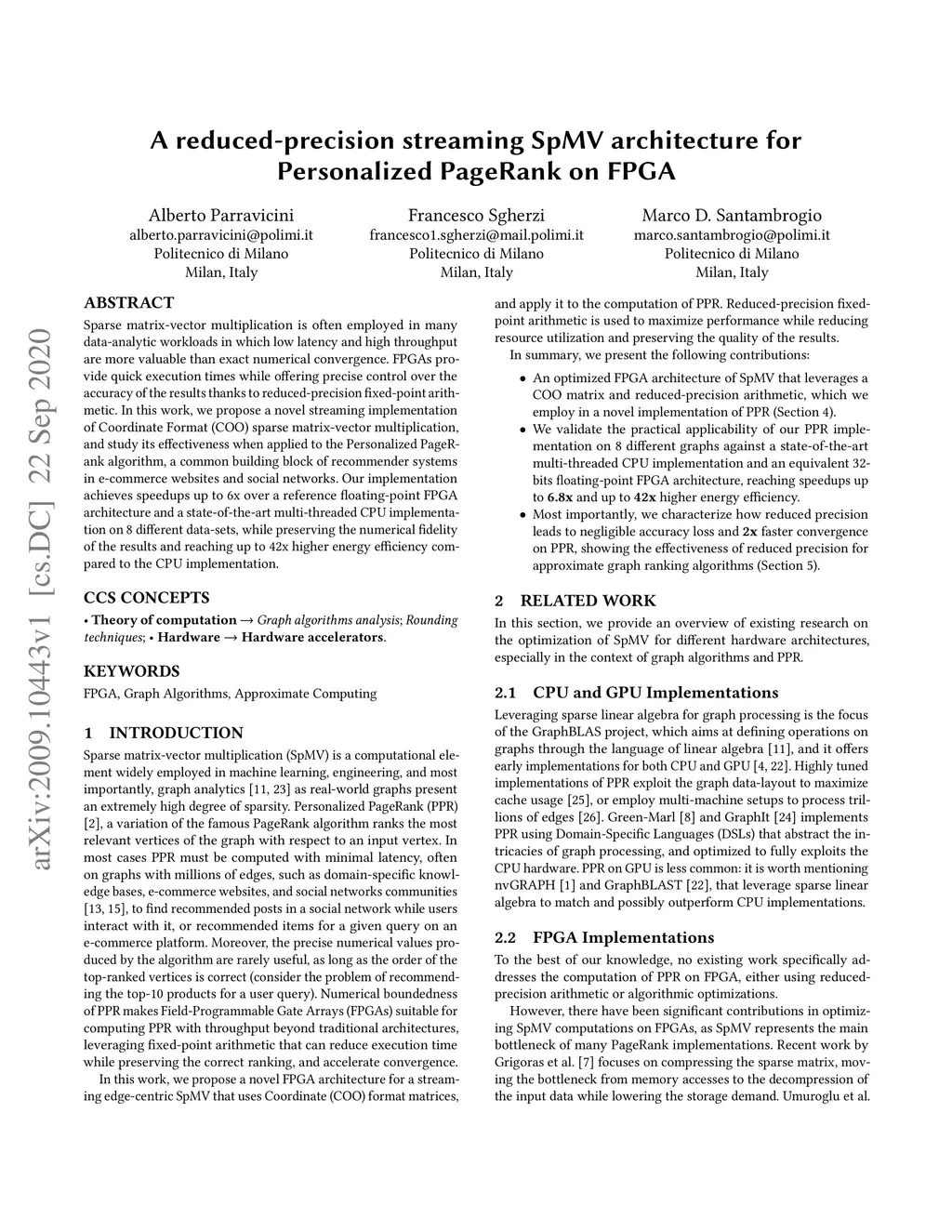 A reduced-precision streaming SpMV architecture for Personalized
