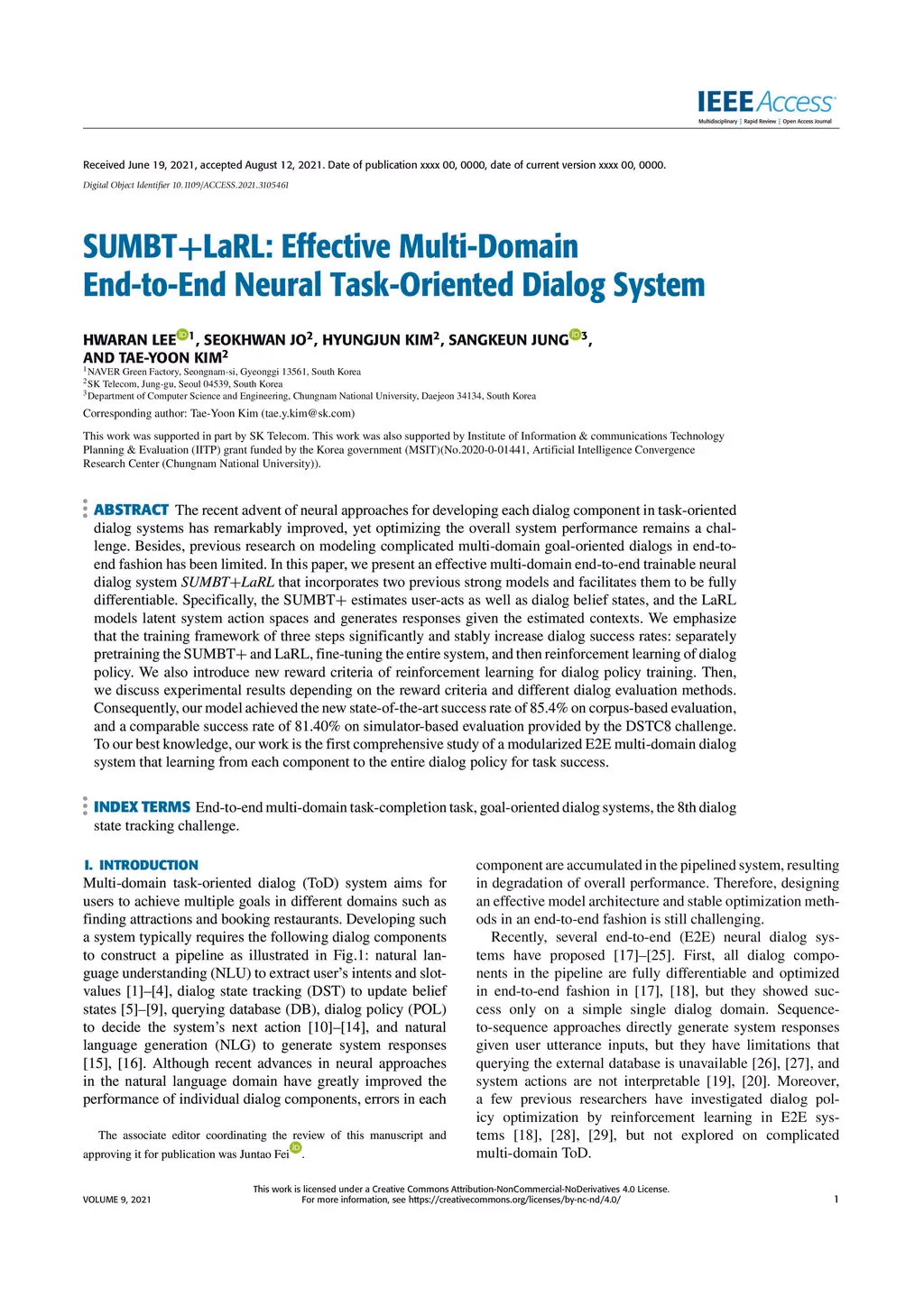 SUMBT+LaRL: End-to-end Neural Task-oriented Dialog System with