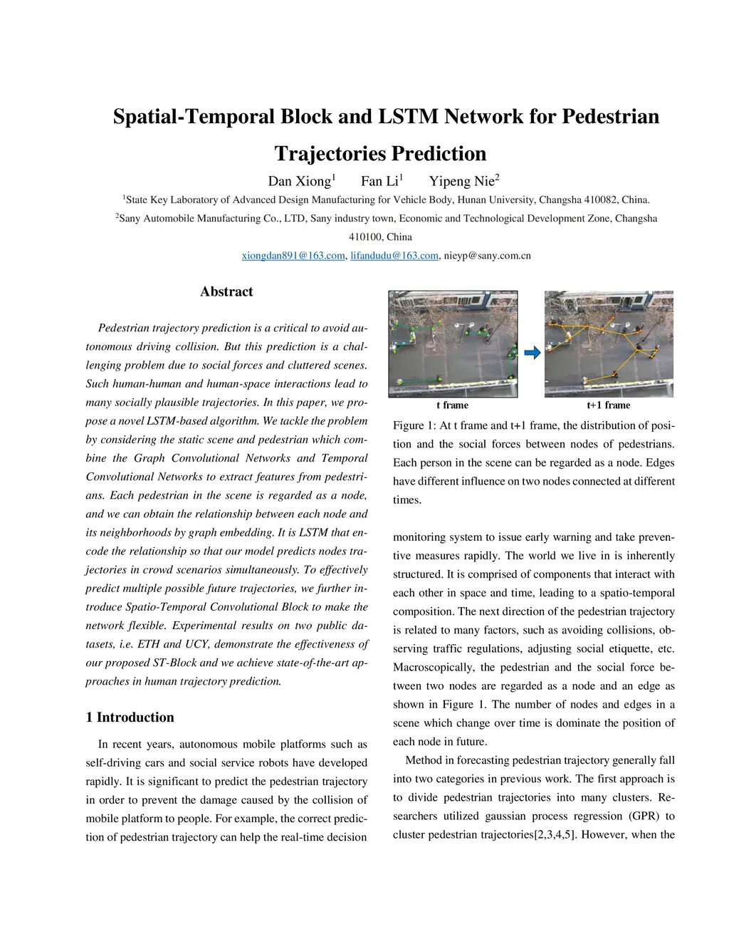 Spatial-Temporal Block and LSTM Network for Pedestrian Trajectories