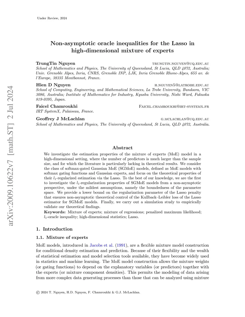 We investigate the estimation properties of the mixture of experts (MoE) model in a high-dimensional setting, where the number of predictors is much larger than the sample size, and for which the literature is particularly lacking in theoretical results. We consider the class of softmax-gated Gaussian MoE (SGMoE) models, defined as MoE models with softmax gating functions and Gaussian experts, and focus on the theoretical properties of their -regularized estimation via the Lasso. To the best of our knowledge, we are the first to investigate the -regularization properties of SGMoE models from a non-asymptotic perspective, under the mildest assumptions, namely the boundedness of the parameter space. We provide a lower bound on the regularization parameter of the Lasso penalty that ensures non-asymptotic theoretical control of the Kullback--Leibler loss of the Lasso estimator for SGMoE models. Finally, we carry out a simulation study to empirically validate our theoretical findings.