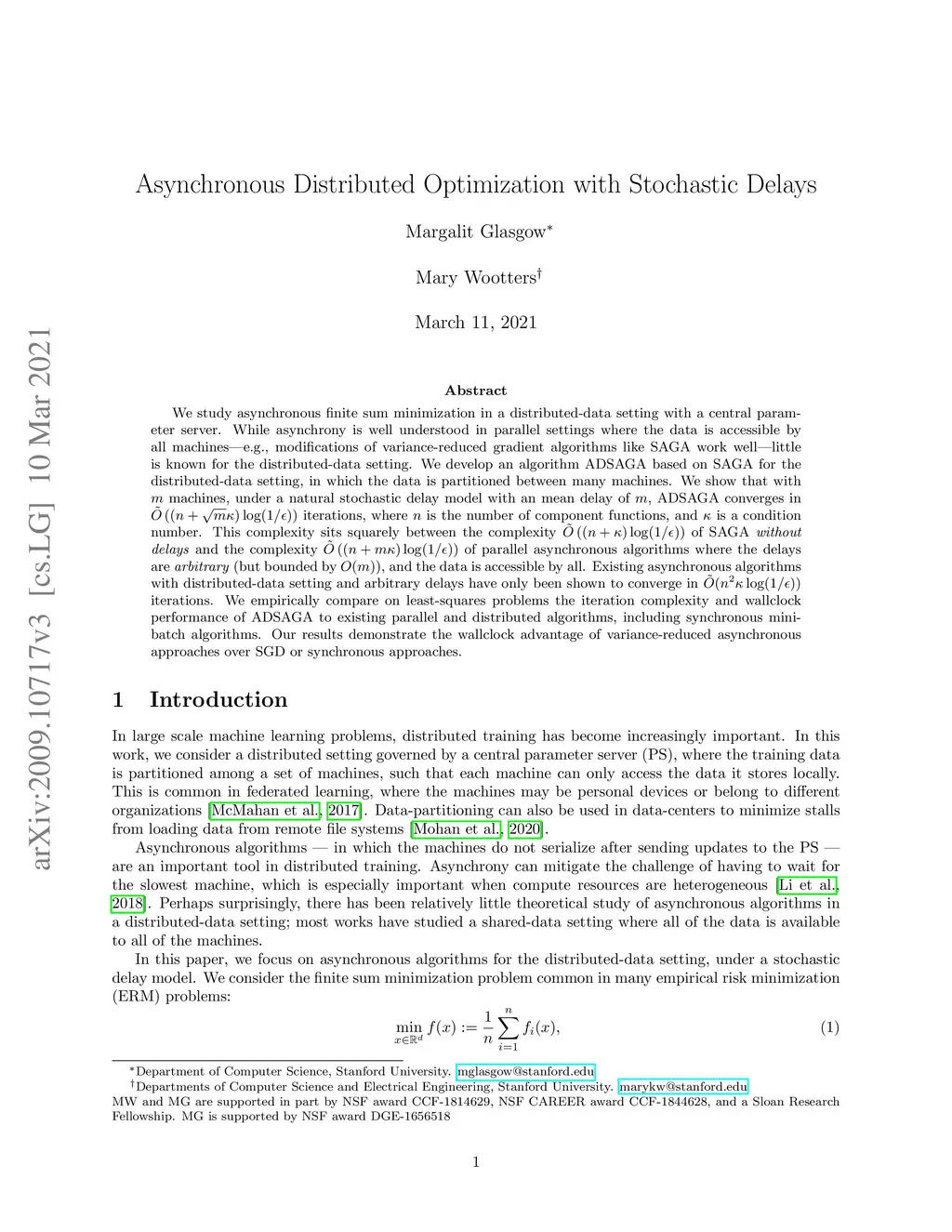 Asynchronous Distributed Optimization with Stochastic Delays