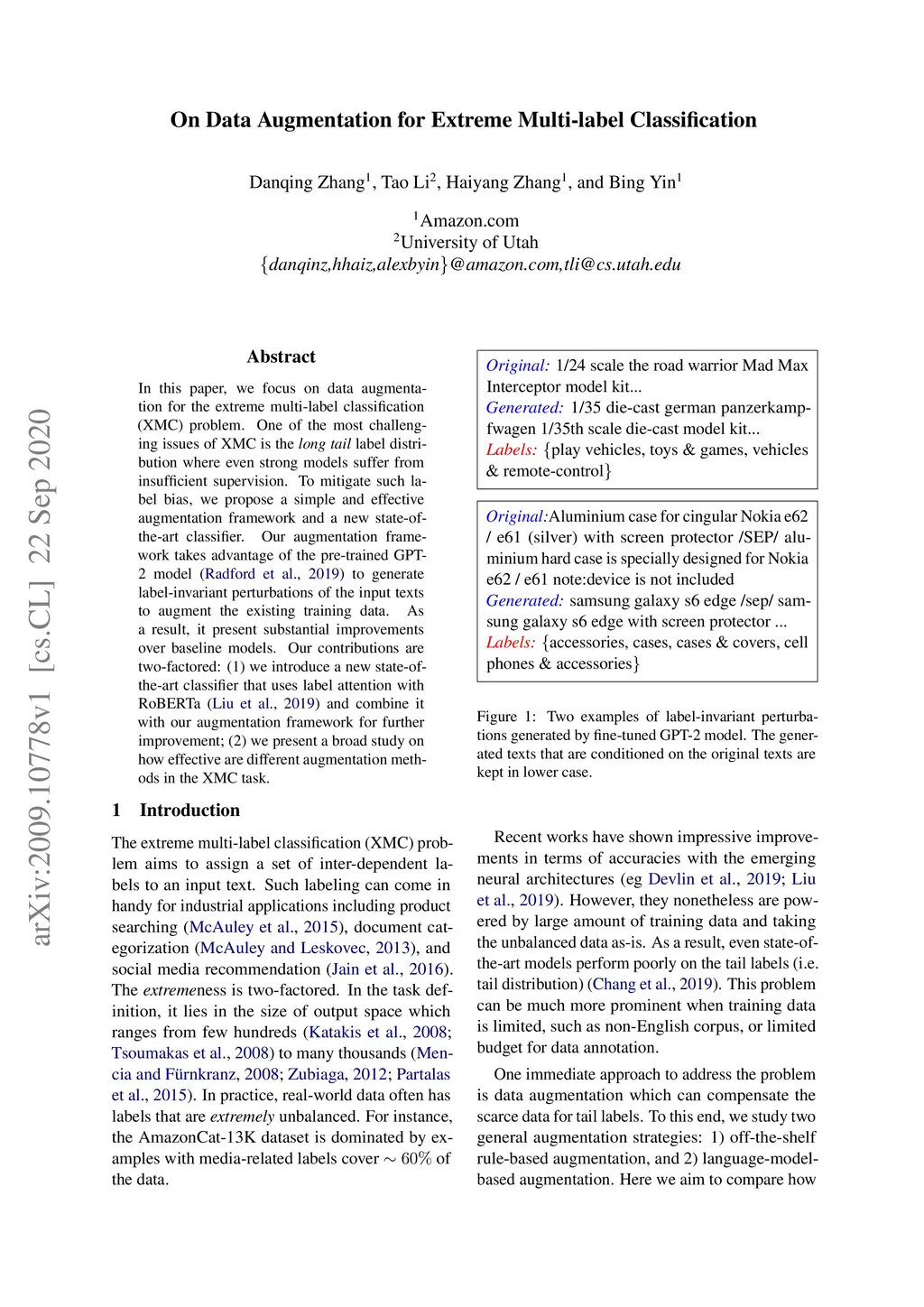 In this paper, we focus on data augmentation for the extreme multi-label classification (XMC) problem. One of the most challenging issues of XMC is the long tail label distribution where even strong models suffer from insufficient supervision. To mitigate such label bias, we propose a simple and effective augmentation framework and a new state-of-the-art classifier. Our augmentation framework takes advantage of the pre-trained GPT-2 model to generate label-invariant perturbations of the input texts to augment the existing training data. As a result, it present substantial improvements over baseline models. Our contributions are two-factored: (1) we introduce a new state-of-the-art classifier that uses label attention with RoBERTa and combine it with our augmentation framework for further improvement; (2) we present a broad study on how effective are different augmentation methods in the XMC task.