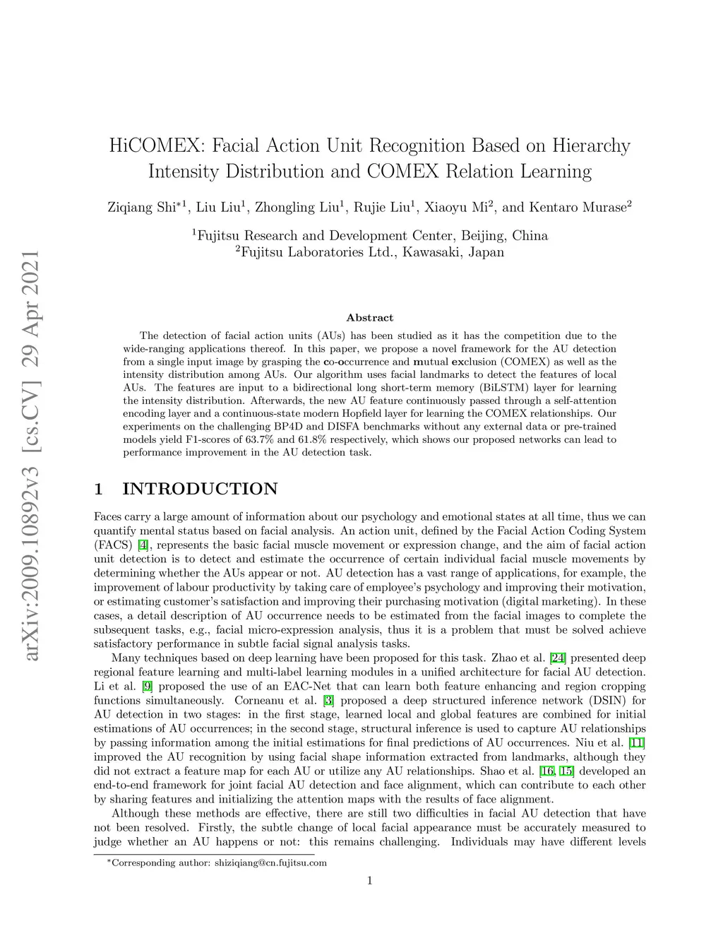 HiCOMEX: Facial Action Unit Recognition Based on Hierarchy Intensity