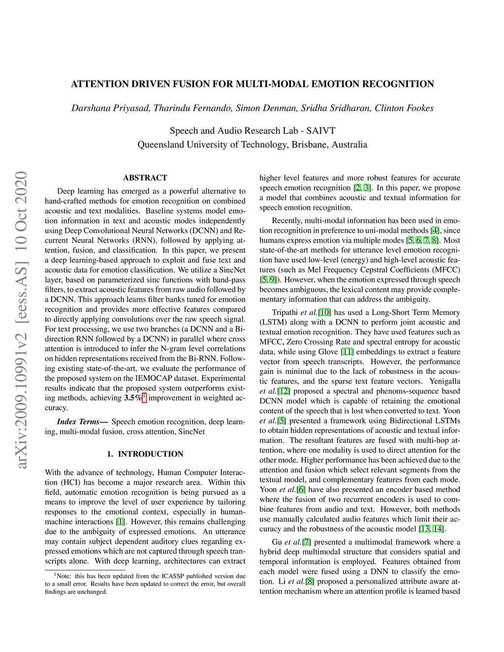 Attention Driven Fusion for Multi-Modal Emotion Recognition