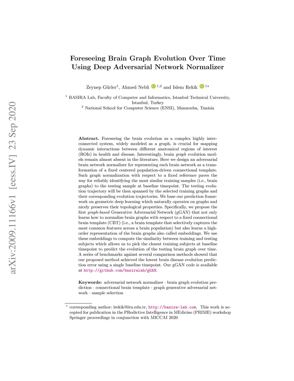 Foreseeing Brain Graph Evolution Over Time Using Deep Adversarial
