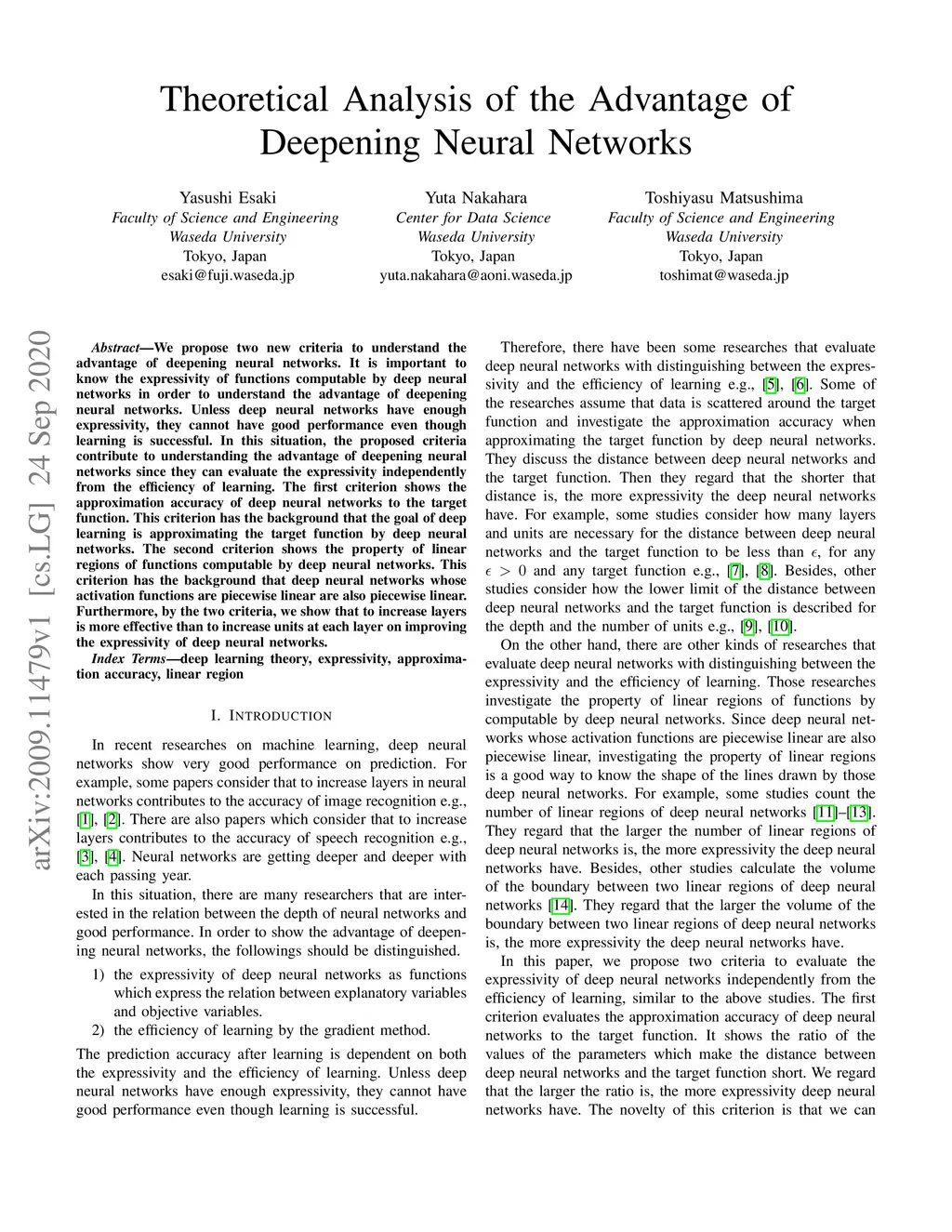 We propose two new criteria to understand the advantage of deepening neural networks. It is important to know the expressivity of functions computable by deep neural networks in order to understand the advantage of deepening neural networks. Unless deep neural networks have enough expressivity, they cannot have good performance even though learning is successful. In this situation, the proposed criteria contribute to understanding the advantage of deepening neural networks since they can evaluate the expressivity independently from the efficiency of learning. The first criterion shows the approximation accuracy of deep neural networks to the target function. This criterion has the background that the goal of deep learning is approximating the target function by deep neural networks. The second criterion shows the property of linear regions of functions computable by deep neural networks. This criterion has the background that deep neural networks whose activation functions are piecewise linear are also piecewise linear. Furthermore, by the two criteria, we show that to increase layers is more effective than to increase units at each layer on improving the expressivity of deep neural networks.