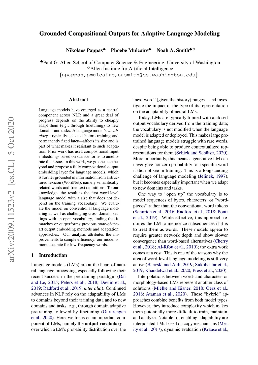 Grounded Compositional Outputs for Adaptive Language Modeling