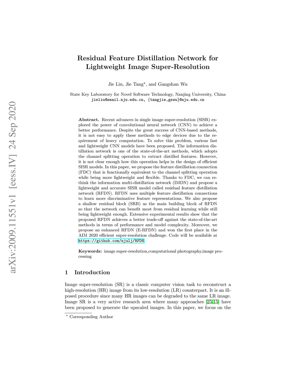 Recent advances in single image super-resolution (SISR) explored the power of convolutional neural network (CNN) to achieve a better performance. Despite the great success of CNN-based methods, it is not easy to apply these methods to edge devices due to the requirement of heavy computation. To solve this problem, various fast and lightweight CNN models have been proposed. The information distillation network is one of the state-of-the-art methods, which adopts the channel splitting operation to extract distilled features. However, it is not clear enough how this operation helps in the design of efficient SISR models. In this paper, we propose the feature distillation connection (FDC) that is functionally equivalent to the channel splitting operation while being more lightweight and flexible. Thanks to FDC, we can rethink the information multi-distillation network (IMDN) and propose a lightweight and accurate SISR model called residual feature distillation network (RFDN). RFDN uses multiple feature distillation connections to learn more discriminative feature representations. We also propose a shallow residual block (SRB) as the main building block of RFDN so that the network can benefit most from residual learning while still being lightweight enough. Extensive experimental results show that the proposed RFDN achieve a better trade-off against the state-of-the-art methods in terms of performance and model complexity. Moreover, we propose an enhanced RFDN (E-RFDN) and won the first place in the AIM 2020 efficient super-resolution challenge. Code will be available at https://github.com/njulj/RFDN.