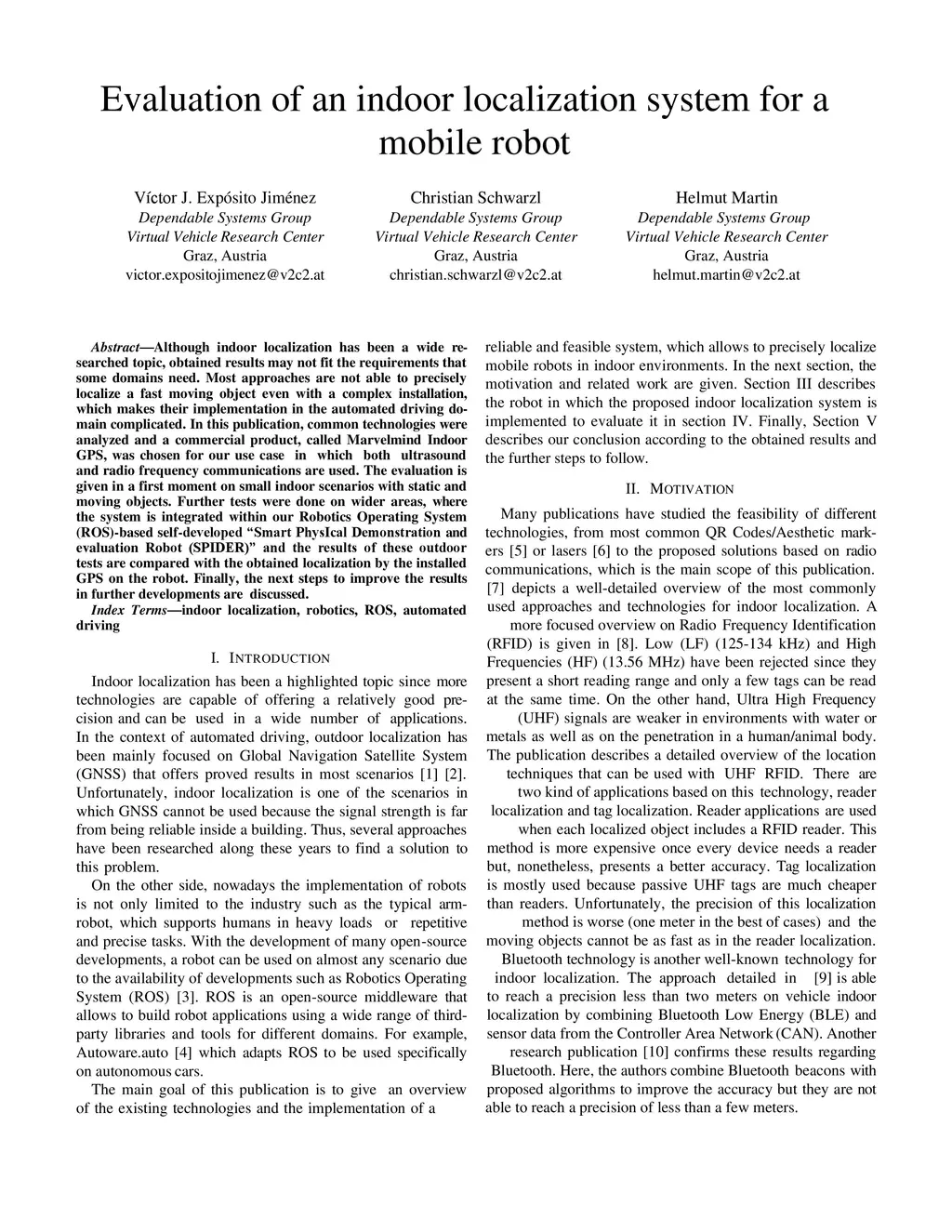 Although indoor localization has been a wide researched topic, obtained results may not fit the requirements that some domains need. Most approaches are not able to precisely localize a fast moving object even with a complex installation, which makes their implementation in the automated driving domain complicated. In this publication, common technologies were analyzed and a commercial product, called Marvelmind Indoor GPS, was chosen for our use case in which both ultrasound and radio frequency communications are used. The evaluation is given in a first moment on small indoor scenarios with static and moving objects. Further tests were done on wider areas, where the system is integrated within our Robotics Operating System (ROS)-based self-developed 'Smart PhysIcal Demonstration and evaluation Robot (SPIDER)' and the results of these outdoor tests are compared with the obtained localization by the installed GPS on the robot. Finally, the next steps to improve the results in further developments are discussed.