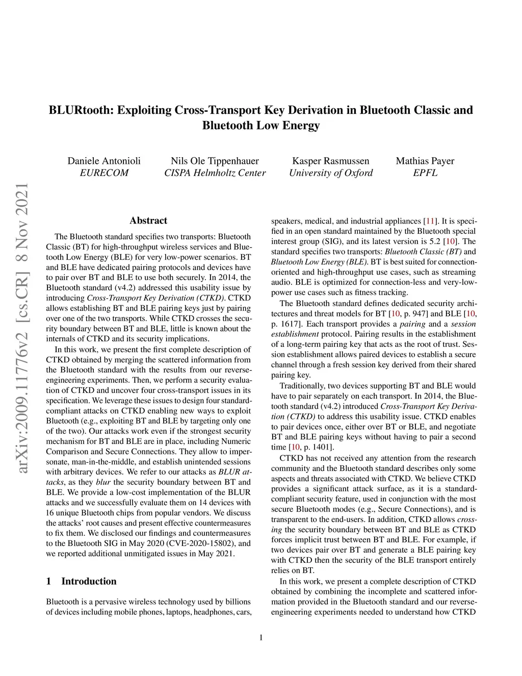 BLURtooth: Exploiting Cross-Transport Key Derivation in Bluetooth