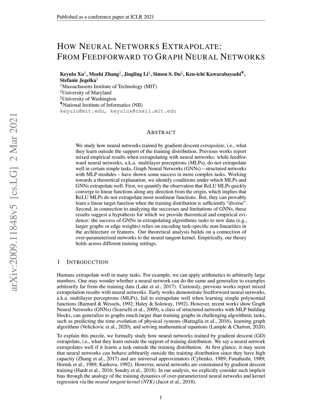 How Neural Networks Extrapolate: From Feedforward to Graph Neural