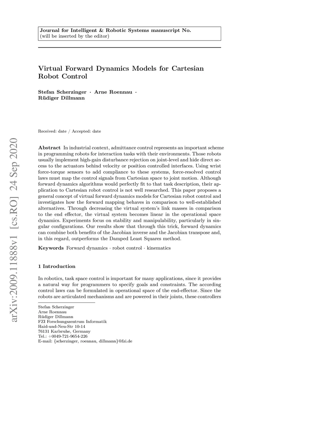 Virtual Forward Dynamics Models for Cartesian Robot Control