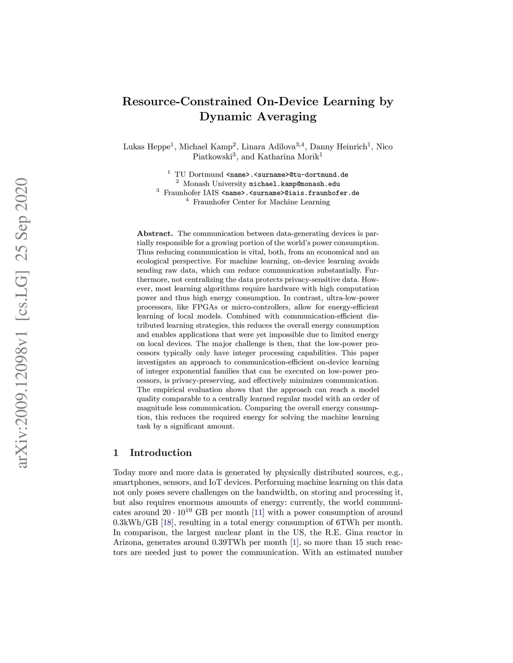 Resource-Constrained On-Device Learning by Dynamic Averaging