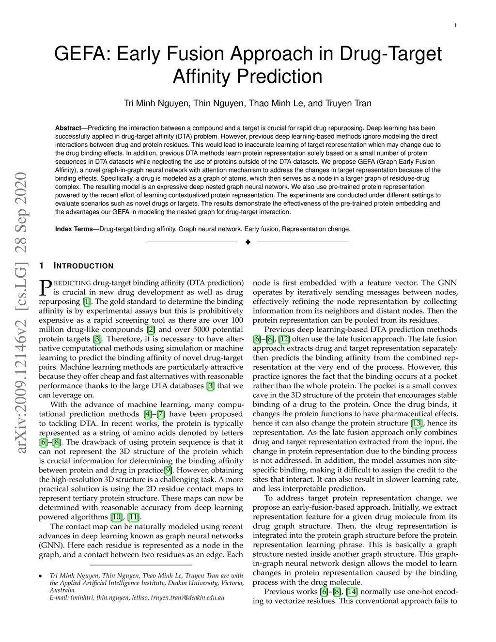GEFA: Early Fusion Approach in Drug-Target Affinity Prediction