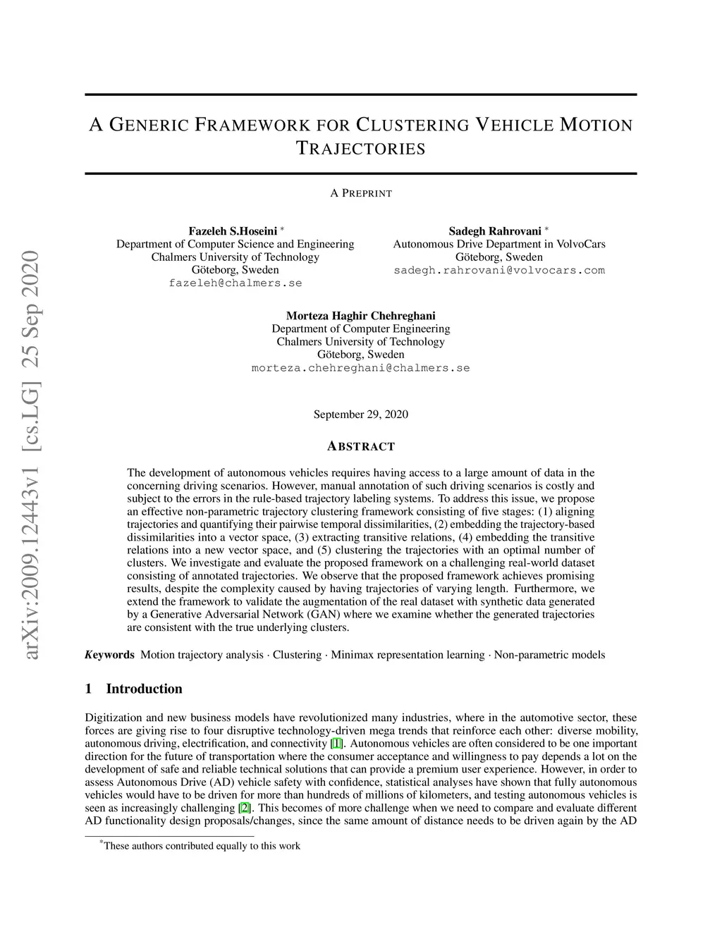 A Generic Framework for Clustering Vehicle Motion Trajectories