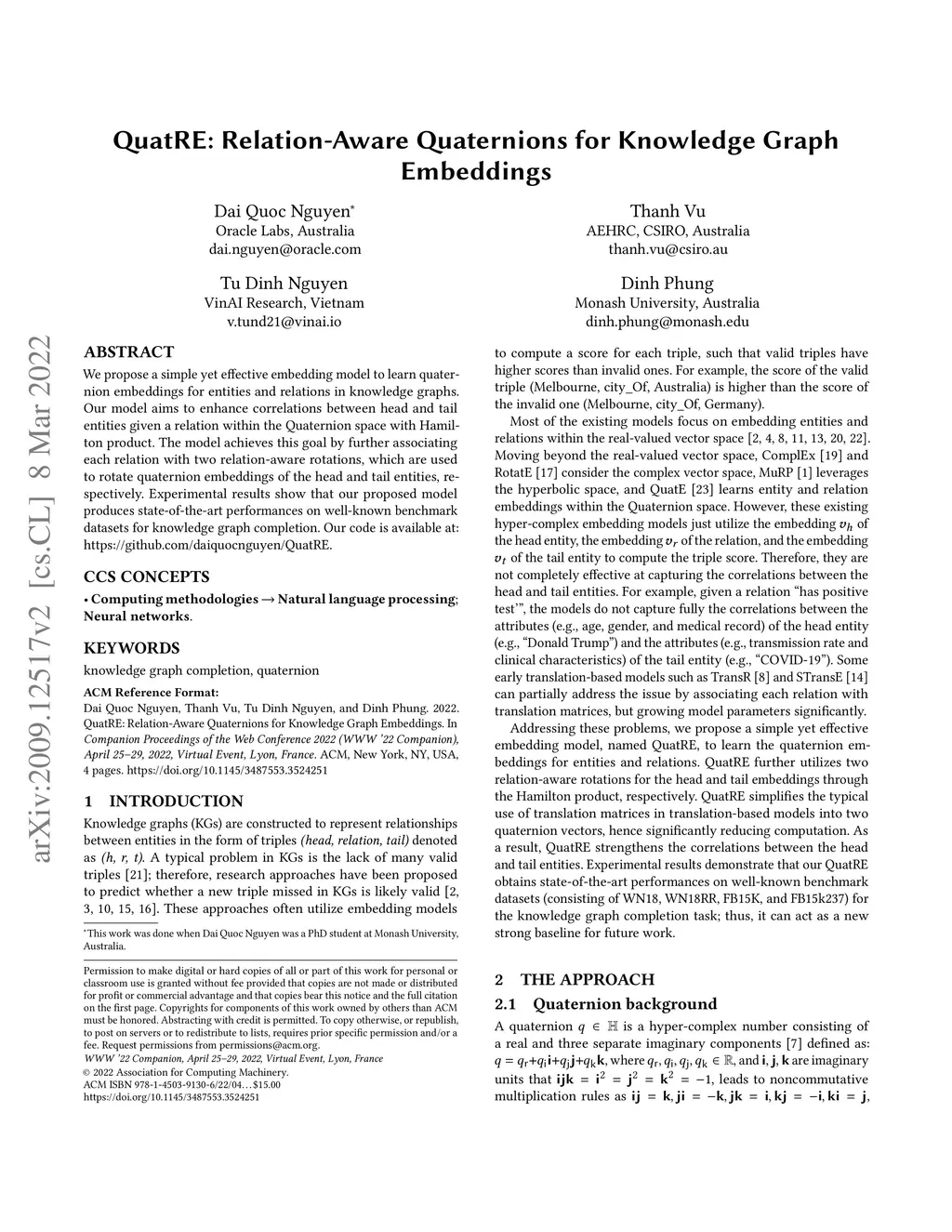 QuatRE: Relation-Aware Quaternions for Knowledge Graph Embeddings
