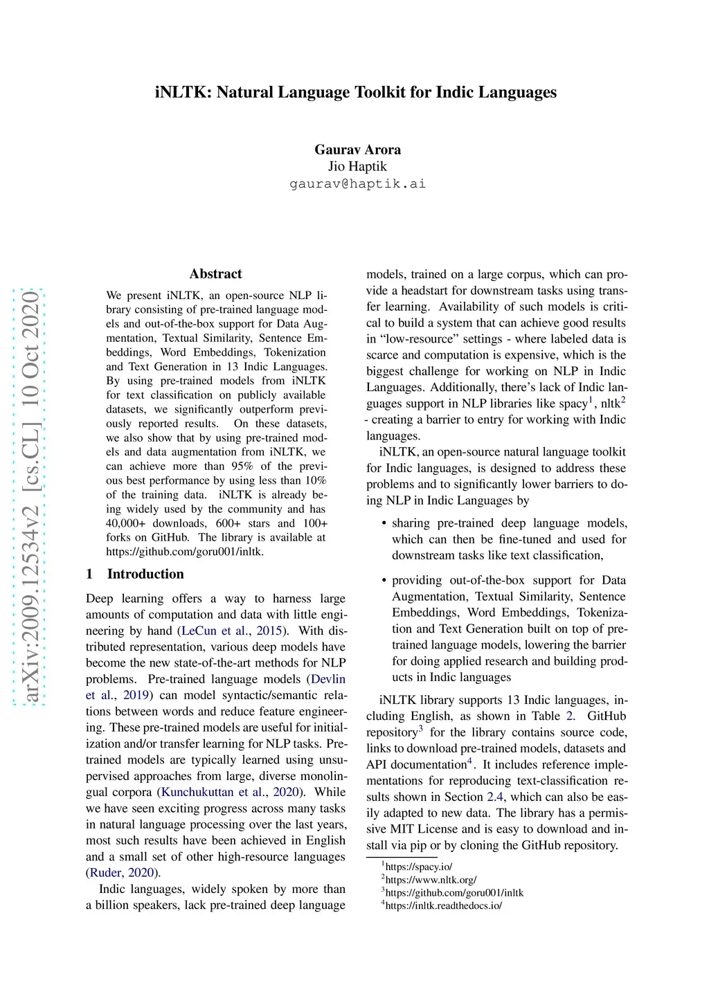 iNLTK: Natural Language Toolkit for Indic Languages