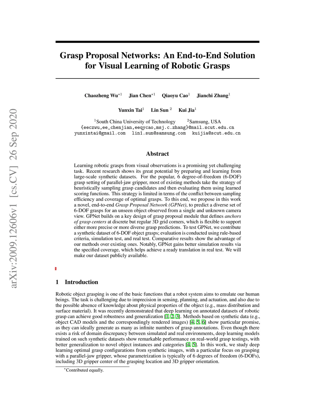 Grasp Proposal Networks: An End-to-End Solution for Visual Learning of