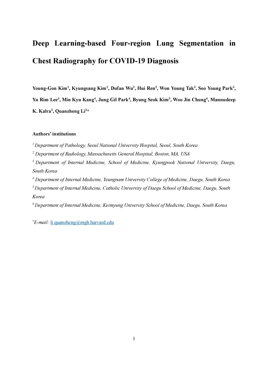 Deep Learning-based Four-region Lung Segmentation in Chest Radiography