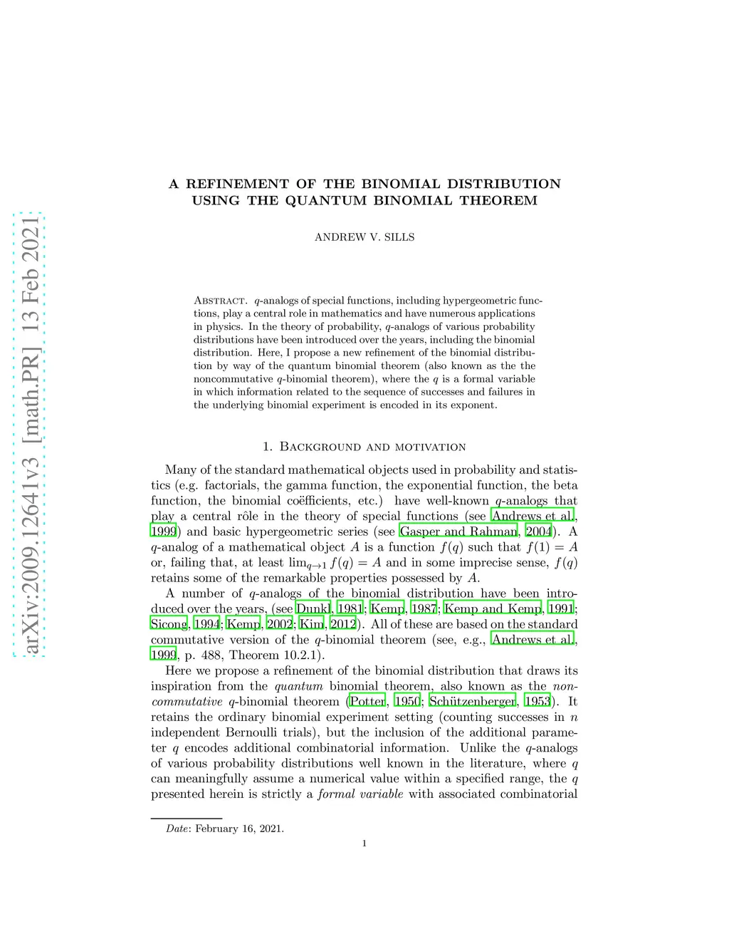 -analogs of special functions, including hypergeometric functions, play a central role in mathematics and have numerous applications in physics. In the theory of probability, -analogs of various probability distributions have been introduced over the years, including the binomial distribution. Here, I propose a new refinement of the binomial distribution by way of the quantum binomial theorem (also known as the the noncommutative -binomial theorem), where the is a formal variable in which information related to the sequence of successes and failures in the underlying binomial experiment is encoded in its exponent.