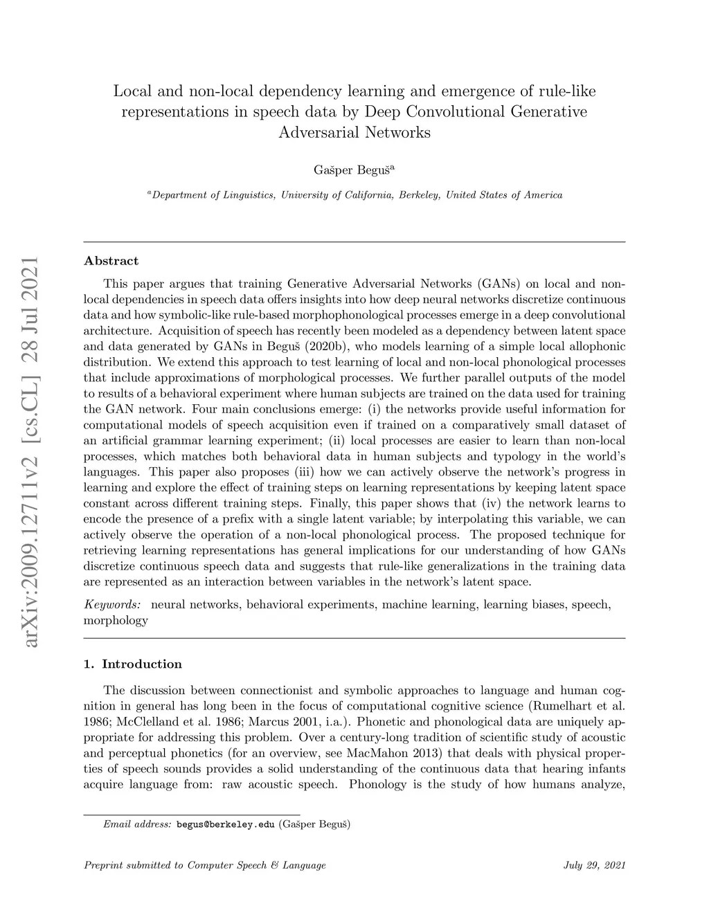 representations in speech data by Deep Convolutional Generative Adversarial