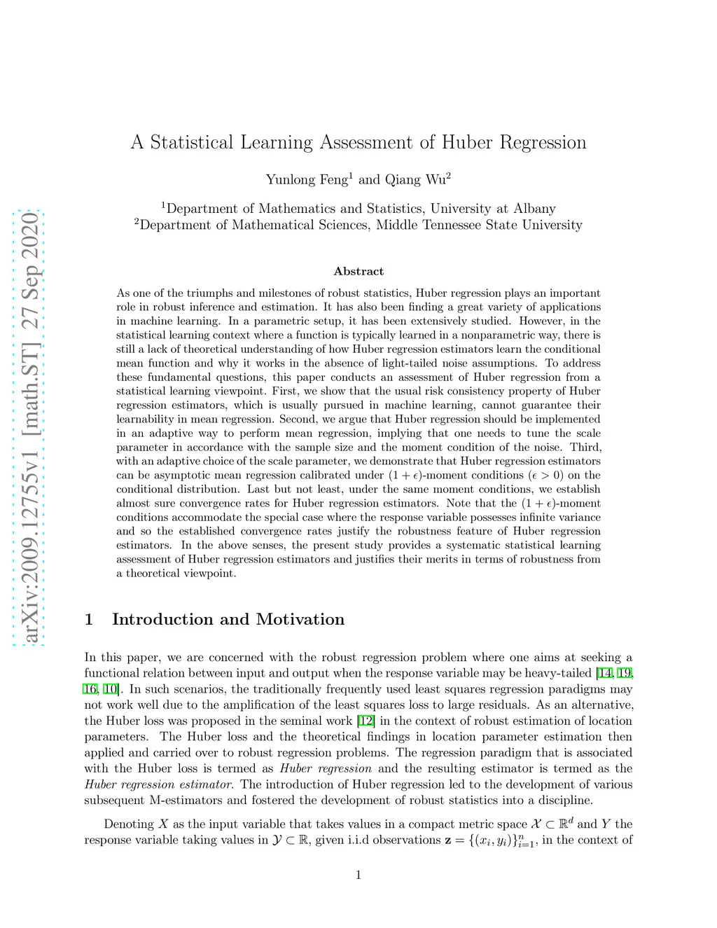 As one of the triumphs and milestones of robust statistics, Huber regression plays an important role in robust inference and estimation. It has also been finding a great variety of applications in machine learning. In a parametric setup, it has been extensively studied. However, in the statistical learning context where a function is typically learned in a nonparametric way, there is still a lack of theoretical understanding of how Huber regression estimators learn the conditional mean function and why it works in the absence of light-tailed noise assumptions. To address these fundamental questions, we conduct an assessment of Huber regression from a statistical learning viewpoint. First, we show that the usual risk consistency property of Huber regression estimators, which is usually pursued in machine learning, cannot guarantee their learnability in mean regression. Second, we argue that Huber regression should be implemented in an adaptive way to perform mean regression, implying that one needs to tune the scale parameter in accordance with the sample size and the moment condition of the noise. Third, with an adaptive choice of the scale parameter, we demonstrate that Huber regression estimators can be asymptotic mean regression calibrated under -moment conditions (). Last but not least, under the same moment conditions, we establish almost sure convergence rates for Huber regression estimators. Note that the -moment conditions accommodate the special case where the response variable possesses infinite variance and so the established convergence rates justify the robustness feature of Huber regression estimators. In the above senses, the present study provides a systematic statistical learning assessment of Huber regression estimators and justifies their merits in terms of robustness from a theoretical viewpoint.